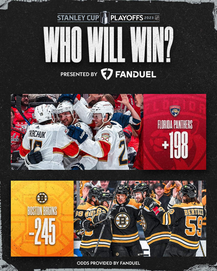 The Bruins set the records this year--65 wins, 135 points. Based on that alone, they better win. Anything less than a Cup is unacceptable, but stranger things have happened. As for the Panthers, they suffered a vast decline from their dream regular season last year, but they are part of this year's Sweet 16. Again, this is a true 1 vs 16 matchup, but remember, we did see a 16 beat a 1 in this year's March Madness tournament. Also, remember what happened to the last team who won 60+ games in a season. Don't believe me? Just ask one of the members of the Panthers: Sergei Bobrovsky. Just a thought.