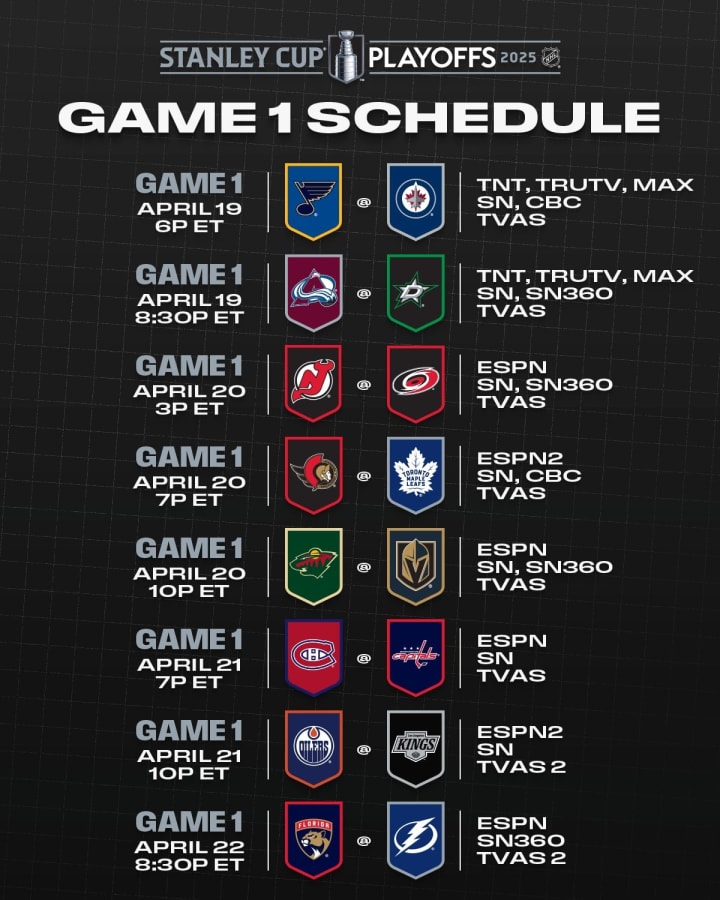 The regular season's ending, and the beautiful annual madness known as the Stanley Cup Playoffs is all set. The matchups are locked in, as is the overall schedule, which is flat out nuts this year. Of the eight series, two of them start on Saturday, three start on Sunday, two start on Monday, and one actually starts on Tuesday. And the one that starts on Tuesday isn't the one you'd think. The opening round of any sport's playoffs is always magical. Whether it's this, the Conference Quarterfinals in the NBA, Wild Card Weekend in the NFL, or (since 2022) the Wild Card Series in MLB, Round 1 is always just amazing, because from the moment the first game begins, the atmosphere and aura let fans know that this is a whole new game.