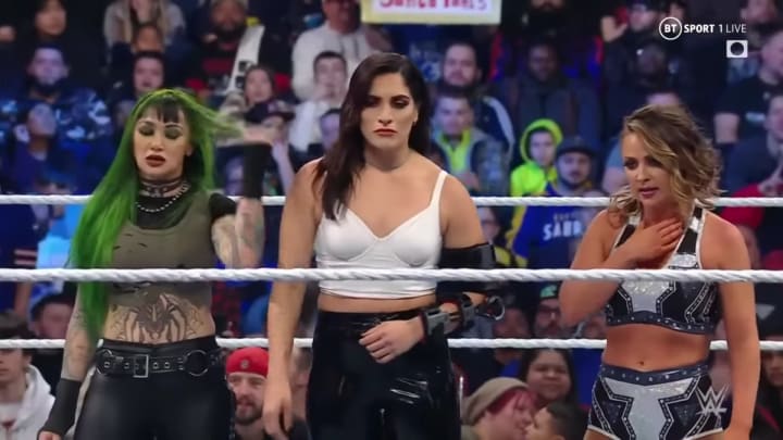 The photo shows Raquel Rodriguez standing in-between Shotzi and Emma, coming after Emma was defeated by Shayna Baszler, and nearly had her arm broken by Shayna in a post-match attack--as did Shotzi. Raquel's appearance led to Shayna leaving, but even though she stood in solidarity with the pair, I can't help but have a feeling that Raquel's on the verge of a heel turn.