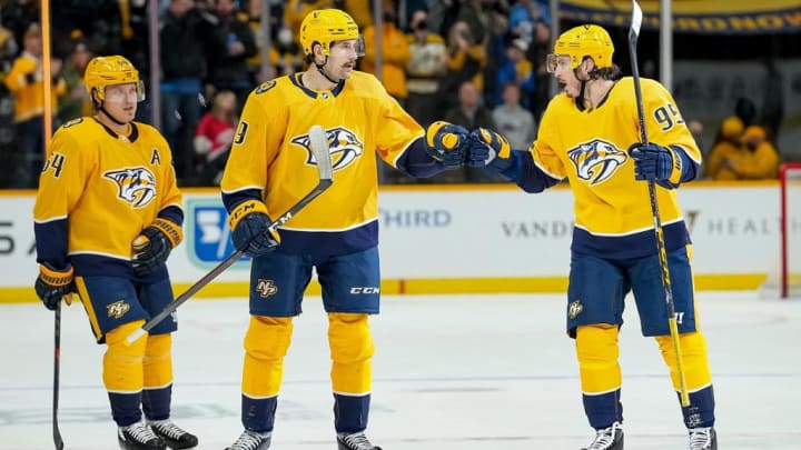 Juuse Saros' story has been interesting. He had served as the main backup for the Predators' longtime reliable goalie, Pekka Rinne, but once Rinne's age started to show in net, Saros received more and more starts. Rinne's retirement following the shortened 2020-21 season placed Saros in the spotlight for this season, and he has definitely lived up to expectations. His numbers: 38-25-3, 2.64 GAA, .918 SV%, and four shutouts. Only Sergei Bobrovsky (FLA) and Andrei Vasilevskiy (TB) have more wins than Saros. David Rittich serves as Saros' backup, and he is 5-3-4 with a 3.56 GAA and a .883 SV%. Yikes. Numbers like that are why Rittich can't stay with a team recently, and it was Rittich in net during the game against his former team, the Calgary Flames. Nashville's GAA of 2.95 is tied for 15th in the league, and that number is a problem. Giving up three goals per game puts pressure on the offense to keep them in the game, and while the numbers say that they can do so, it shouldn't be a habit.