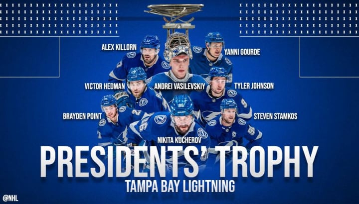 2019-20: After the league paused in March of 2020 due to the COVID-19 pandemic, the regular season was deemed over, and the team who finished with the best record ended up being the Boston Bruins, who were the only team to finish with 100 points (ending up with that exact number). However, that year saw them completely fizzle in the Round Robin, losing all three games to drop to the #4 seed, which also resulted in a second round exit. The team who beat them out? The same team who badly fizzled a year prior: the eventual Stanley Cup Champions, the Tampa Bay Lightning.