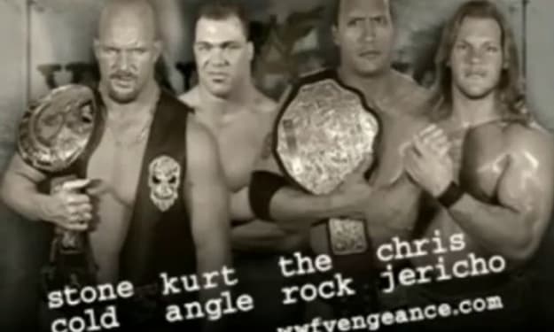 Eddie Guerrero: Eddie Guerrero was about a year removed from his run as WWE Champion at the time this angle began. On February 15, 2004, Eddie defeated Brock Lesnar at No Way Out to capture the WWE Championship and complete WWE's Grand Slam, and he successfully defended the title against Kurt Angle at WrestleMania XX. Eddie's run at the top lasted five months until he was dethroned at The Great American Bash by John "Bradshaw" Layfield, and the rest of 2004 would see him continue his feud with Angle before returning to the title picture once more at Armageddon.
