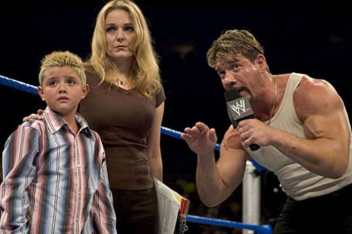 Clearly, Rey had enough of this and confronted Eddie, who threatened to reveal a long dormant secret that the pair had shared, which actually caused Rey to back down and give in to Eddie's order to get on his knees and beg him not to reveal it. The following week saw Eddie force Rey into teaming with him in a WWE Tag Team Championship contest, though Eddie used this to attack and beat up Rey at every opportunity. Eddie was prepared to further humiliate Rey on the following week, but it was at that moment that Eddie's wife, Vickie Guerrero (remember that name), and their daughters (including Shaul, who would follow into the family business) appeared, after which Vickie pleaded with Eddie to come to his senses and not to reveal whatever he was holding over Rey.