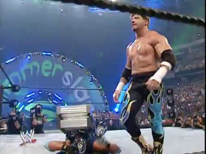 Eddie spent weeks walking around with that mask until Judgment Day came, and that whole match told the story. It was clear why Eddie attacked Rey. The fans knew why. Michael Cole and Tazz knew why. Rey definitely knew why. Eddie knew it as well: he had problems beating Rey. That's what it was all about. The bout was stellar, and it would see Chavo attempt to get involved and insert a chair into the equation. Though Chavo wouldn't get anywhere, Eddie would, using the chair on Rey and getting DQ'ed, and it was followed by a brutal beatdown with the same object post-match.