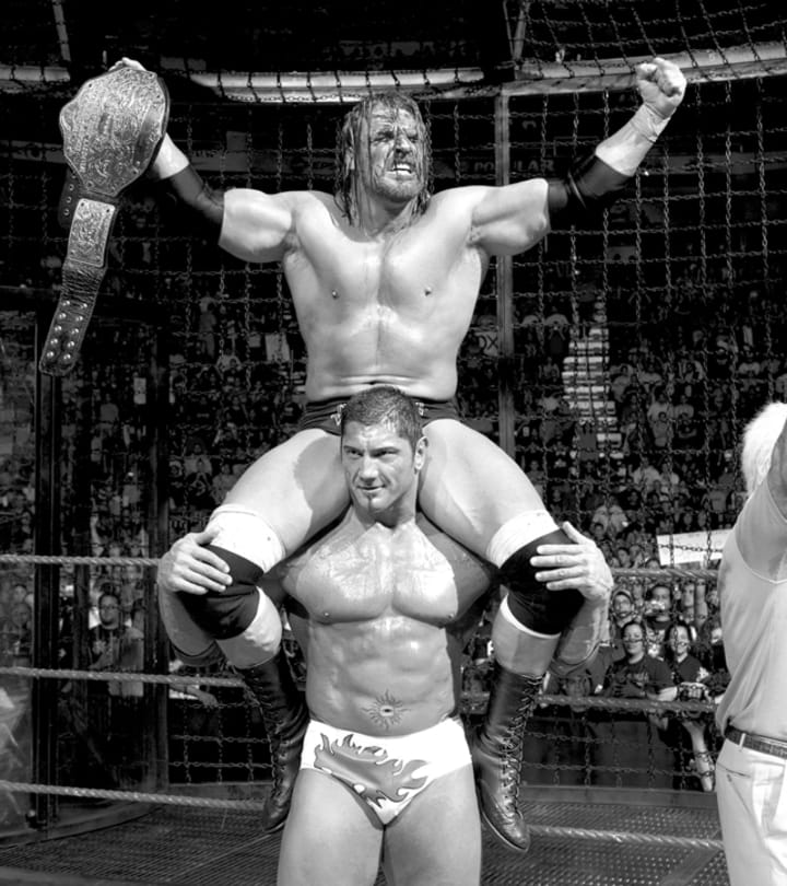 The Origin: The 2004 Survivor Series saw Triple H, Gene Snitsky, Edge, and Batista against Randy Orton, Chris Benoit, Chris Jericho, and Maven, and while it ended up with Orton alone against Triple H and Edge, Orton would eliminate both to get the victory for his team. Per the stipulation set by Raw General Manager Eric Bischoff, Team Orton would run Raw for four consecutive weeks, and in Maven's go around, he went after Triple H's World Heavyweight Championship, but came up short. Benoit planned to fight for the title inside a steel cage, but he ended up facing and defeating Edge after Triple H was found beaten down (apparently) by Batista.