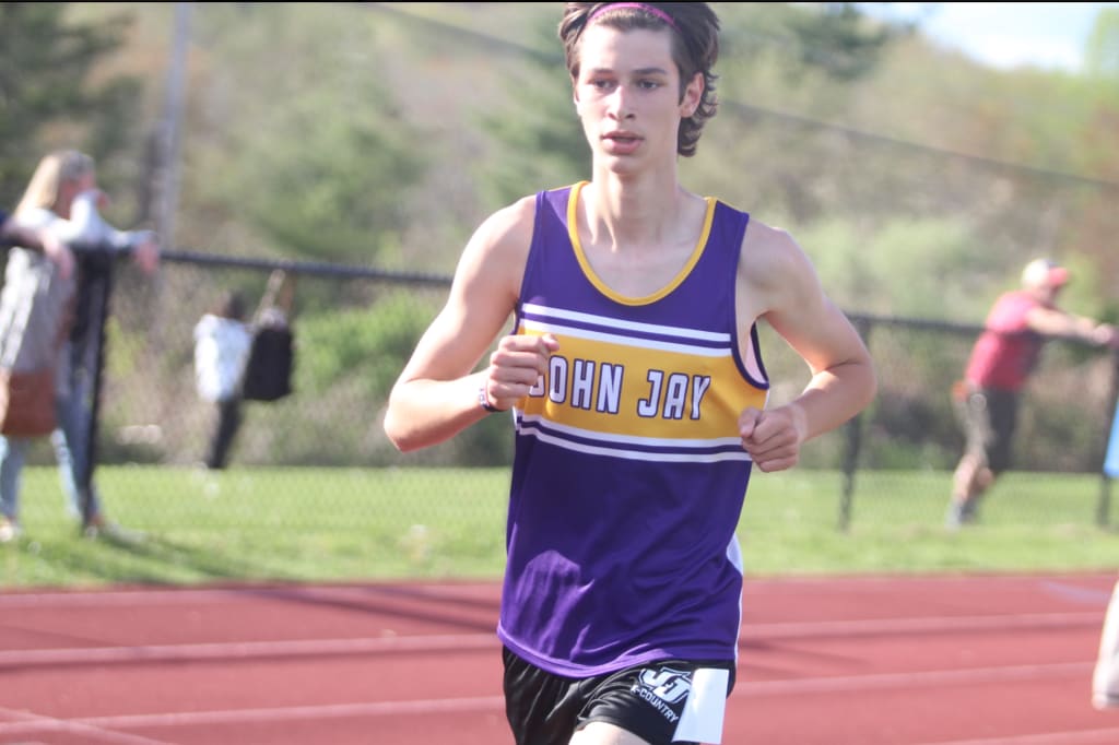 Last year in 2023, Andy Condon didn’t make it to the state meet, and in this year’s 3200 meter state qualifier, his second place finish left him short of the big dance. Fortunately, the junior runner added another event to his arsenal, and in the home stretch of the steeplechase, he was still in play to qualify for the big time in Syracuse, New York. But in the final 150 yards of the race, Condon fell behind to Arseniy Nechaev of Arlington, and while it may have looked like he would be denied again, the John Jay Wolf knew exactly what lay ahead.