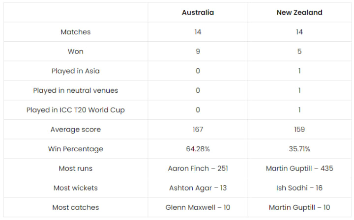 AUS vs NZ T20 Head to Head Stats: