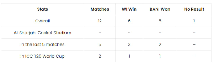 Bangladesh vs West Indies Head to Head