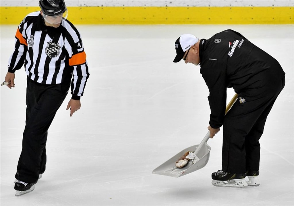 And, after waiting for the Penguins to take a 3–0 lead (for some reason), Waddell flung the fish on to the ice.