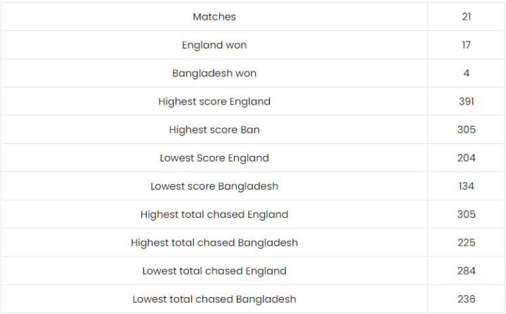 The two teams have met in international cricket 31 times. England led the head-to-head series 26-5. Bangladesh has only defeated Bangladesh twice in World Cups. However, the two have never locked horns in T20Is.
