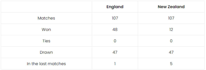 From 1929 till 2020, England and New Zealand have challenged each other in 107 matches in the Tests formats. The first match they played in was held at Christchurch and England won with 8 wickets. In the Test, the two teams differ by a huge margin, and New Zealand had their first win in February 1978 at the Wellington. In the last Test matches, New Zealand has impressed their fans by finishing them off victoriously.