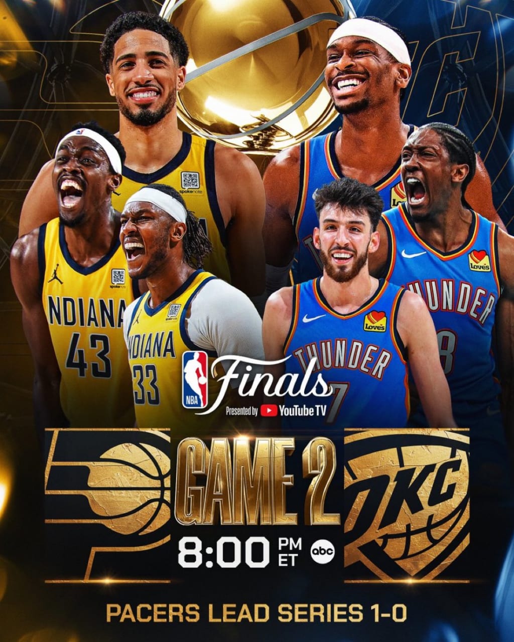 The Thunder won Game Two, 123-107, and the NBA Finals is all even at one. Shai Gilgeous-Alexander added 34 more points in this series, giving him an overall total of 72, which breaks Allen Iverson's record for the most total points in his first two NBA Finals games (Iverson had 71 combined points in the first two games of the 2001 Finals). For the second straight game, no Pacer had 20 points, but unlike Game One, Haliburton was the lead scorer with 17, though he had a very slow start to this game. Pascal Siakam had a double-double in Game One, but in this game: 15 points, 7 rebounds.
