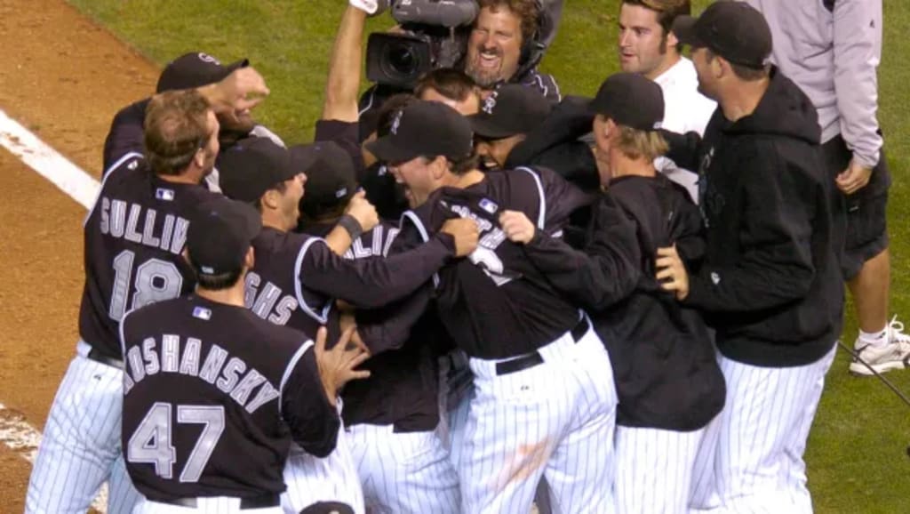 It would be eight years before another Game 163 would be played, and that's where the main photo comes in. 2007 was a wild year in the National League. That was the year that Philadelphia's rise began, but mainly, the San Diego Padres and the Colorado Rockies were in a tight race for that NL Wild Card. After 162 games, they were tied, leading to the clubs facing off in Coors Field on October 1, 2007. The game was historic for the network that aired it: TBS. That was the year that TBS truly went national with their MLB coverage, as they had only been the Braves network for so long. The game went 13 innings, and saw the Rockies down 8-6 in the bottom half of the inning, but they would score three in the inning, with the winning run scored by Matt Holliday, though some still say Holliday didn't touch the plate.