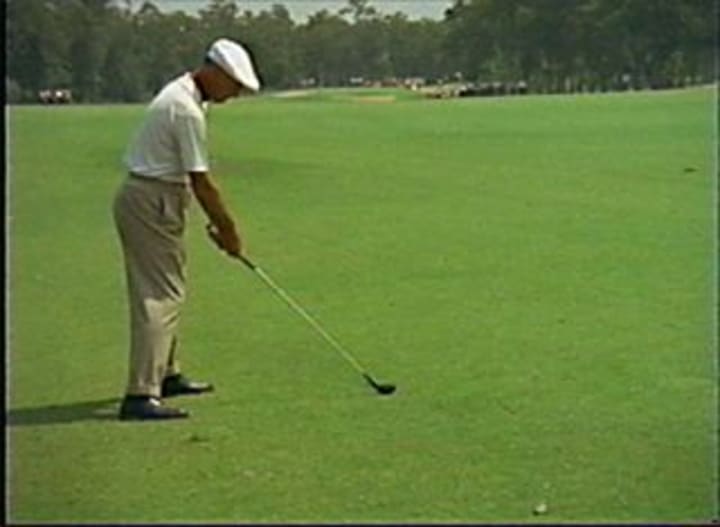 What we are looking for in setup is a slight bend of the knees, neutral spine, arms hanging down in a comfortable position. There should be no effort to reach for the ball. Feet should be a shoulders width apart for most mid iron shots, a little wider for driver and narrower for short irons and wedges. You should have pressure in the balls of your feet and if I was to try to push your on your backside, I shouldn’t even come close. If you refer to the late and great Mr. Ben Hogan’s setup, you will see that it meets these requirements.