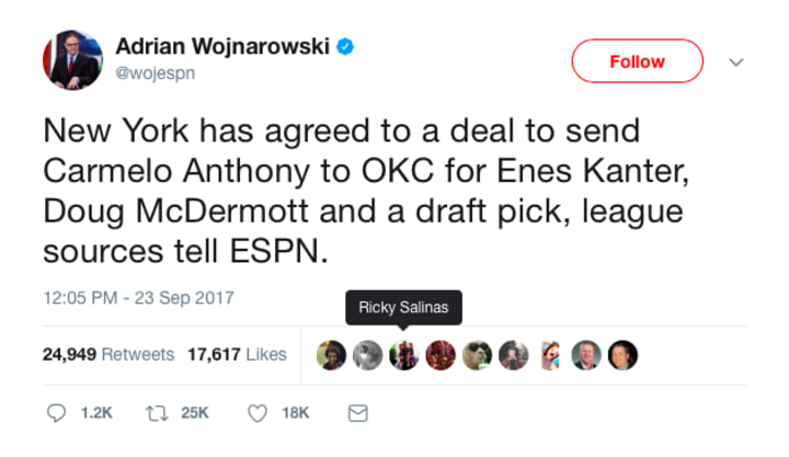Melo was apparently not willing to be traded to any team other than Houston at first, then he said if the deal fell through with the Rockets that he would accept a trade to the Portland TrailBlazers. This all happened yesterday afternoon. Out of the blue tweets started circulating saying that Melo had added teams that he would trade his no trade clause for, including the Cleveland Cavaliers and OKC. Cleveland has the Nets 2018 first-round pick that was hoarded and guarded by Danny Ainge so carefully for so long, but then was dealt in the Kyrie Irving blockbuster trade. As a Knicks enthusiast, I was banking on this Melo to Cleveland for the Nets pick trade, but there wasn't even any traction on that trade.