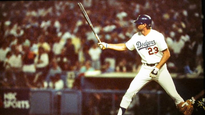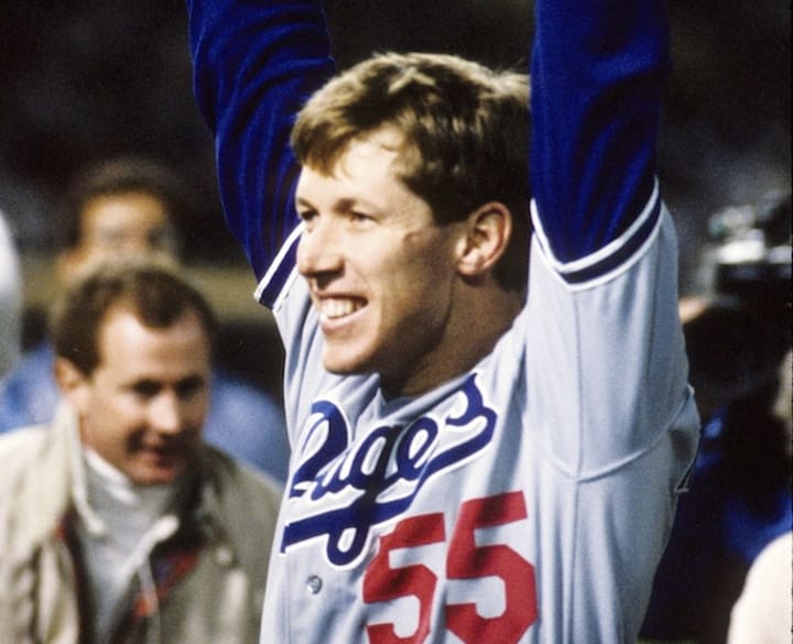 The Dodgers faced off against the Oakland Athletics in the World Series, marking the first time in MLB history that the entire Fall Classic would take place in the Golden State--a feat that would be only occur two other times since then. The Dodgers had home field in that year's Series despite finishing ten games worse than the A's, as that year was the National League's turn to have home field advantage. The Dodgers faced problems from the get-go. Because they used Hershiser so much, they couldn't start him three times in a potential seven-game Series. Also, the Dodgers were behind after scoring two in the first inning. It was 4-2 A's for the longest time, but the Dodgers cut it to 4-3. That would be the score in the bottom of the ninth, with Dennis Eckersley, one of the greatest closers in baseball history, on the mound. The first two Dodgers batters were retired, but Mike Davis walked. Even so, the Dodgers were one out away from being one down in the Series.