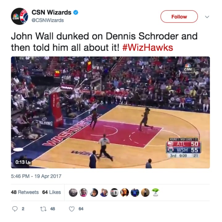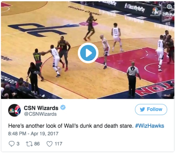 It’s getting to the point where Wall is straight up murdering people on the court, and then turning and yelling at their corpse for even pretending to stop him.
