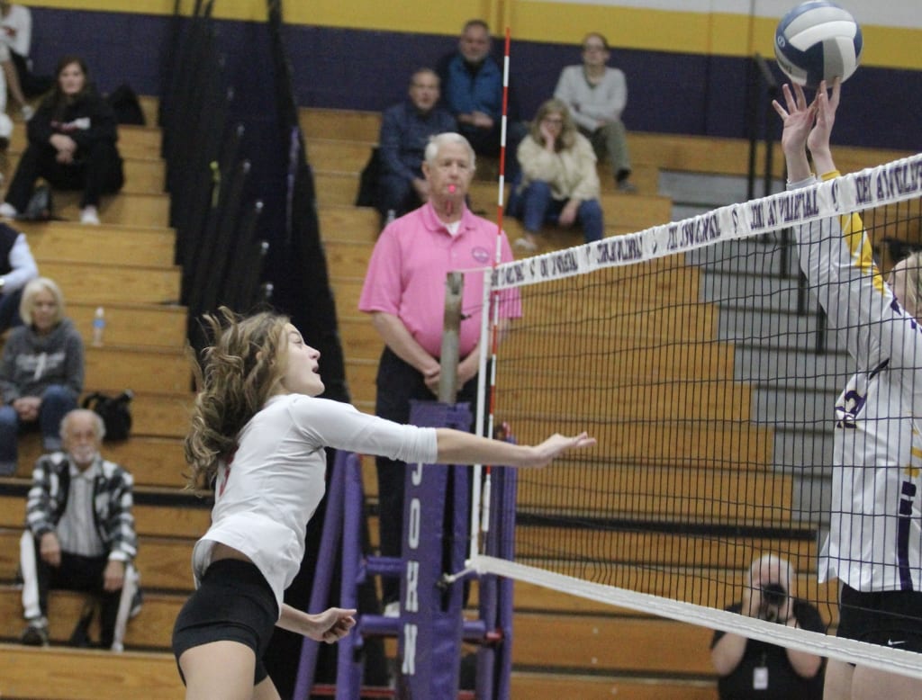 After Kellock hit long, Samantha Hufnagel’s tough dig led to a Rachel Lewis kill and John Jay followed with winning hits from Ahmetaj, Flynn and Hanna Martinsen to help build a 14-10 advantage.