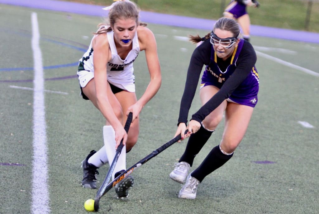 Yorktown began by forcing a couple of penalty corners, and the returns were just as quick. The pass came across to Lilly Diaz, and her ground ball rolled all the way through for a 1-0 lead at 12:16.