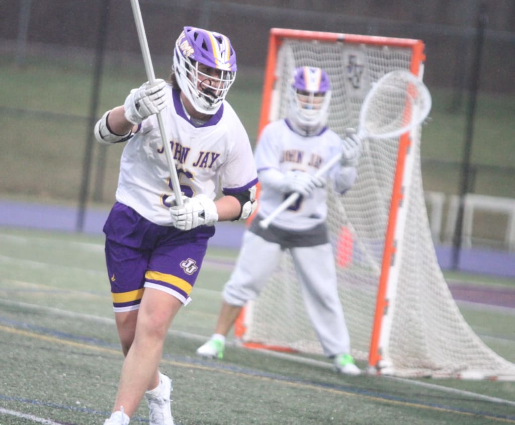 On Tuesday April 15, spring break let the lacrosse team sleep a little late. It also meant the Wolves took to Contest Field early versus Burnt Hills. But John Jay woke up first and also stayed up late.