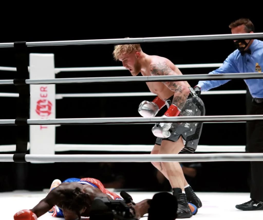 Jake Paul who’s a YouTuber star moved from to 2-0 as a professional boxer with a thunderous knockout of Gib Robinson which left the former NBA star flat on his face from watching boxing match.