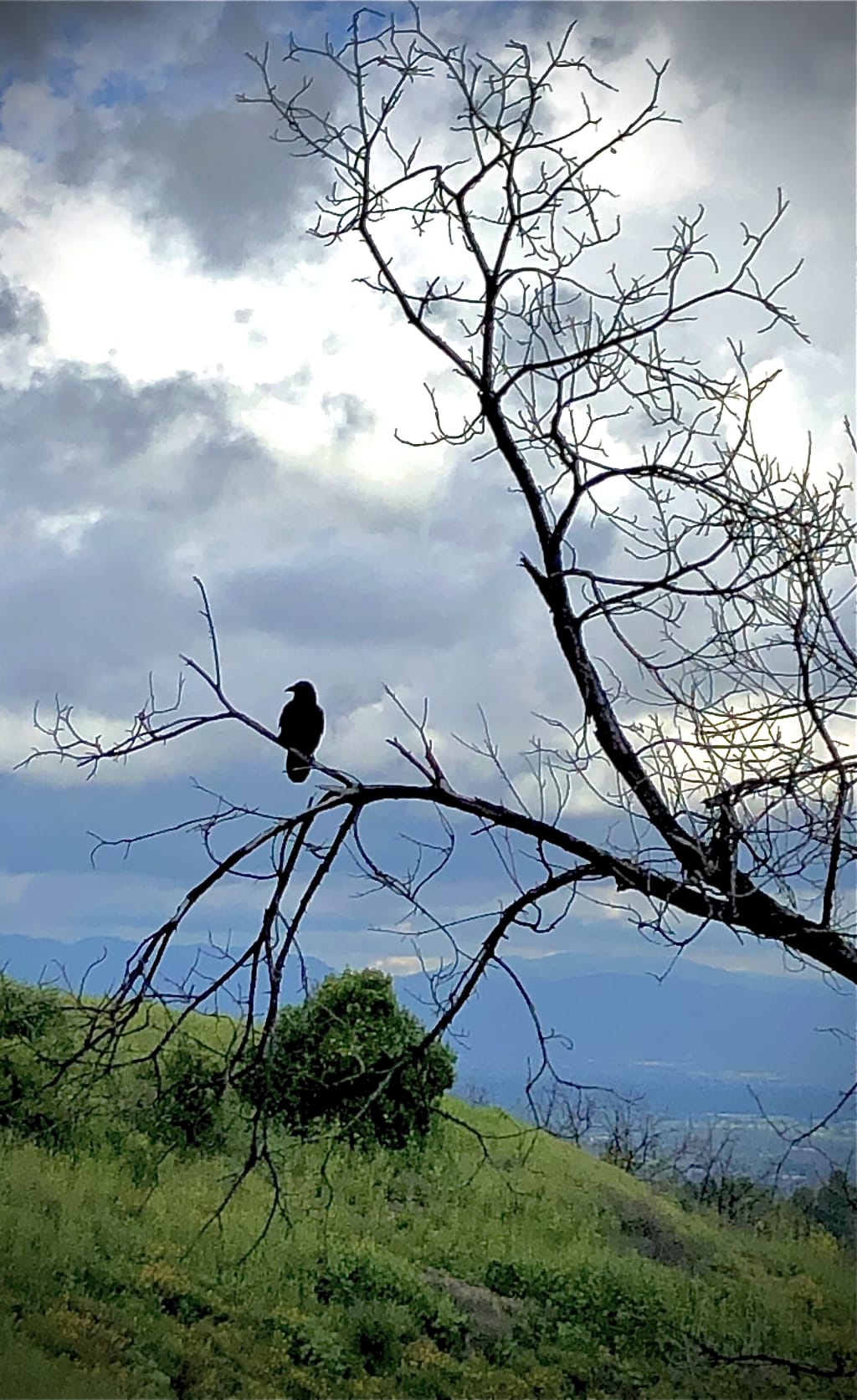 They were surprised by a girl who crept toward the tree appearing to share a brief silent exchange with the raven on her shoulder. The raven spread and shook its wings as the girl expressed her disapproval before proceeding down the steps.