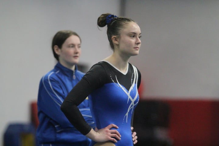 Lia Graap holds that distinction and finished first on the uneven bars with a score of 9.00. A season’s best, the senior has been relegated solely to the elevated portion of the program. “I’d rather do that than tumbling after I hurt my knee last year,” said Graap.