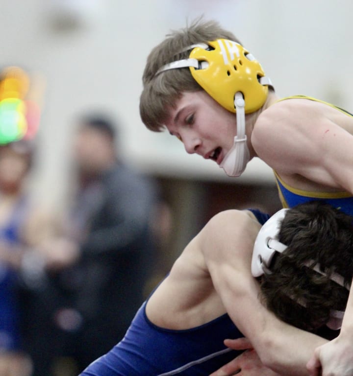 So starting at 110, Pace Zieler didn’t miss a beat. He took down Eirnin Kellner and getting two more on a near fall, the 8th grader was right at home in the top position. “I like being up, just beating up on the guy, keeping the pressure on and getting them to their back,” he said.