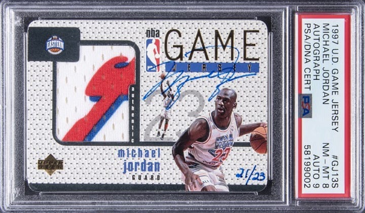 If the 96–97 Skybox Premium Autographics series was the introduction to what has now become a hobby mainstay of pack pulled autograph cards, then the 1997–98 Upper Deck Game Jerseys insert did the same for the introduction of slices of jersey in the card itself, which has also become common in cards today. However, whereas today’s jersey cards can be found at least commonly enough to make them relatively accessible to most collectors, the 97–98 Upper Deck Game Jerseys came at just 1 per 2,500 packs. Talk about scarcity. In fact, the Jordan version of this card had a total of only 23 produced, and higher graded versions of it can sell today for well into the five figures. Despite the rarity, and the fact that most of us will likely never even gaze upon this card in real life, it’s relevance in basketball card history is set, since this tactic has become a mainstay in cards today.