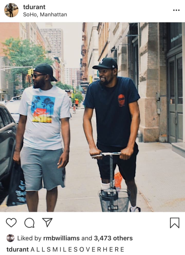 This would mean that Kevin is interested in joining his company and build his brand with the Knicks or Nets. Now, this comment can be interpreted in many different ways. Maybe Durant prefers a home in New York for business ventures and chooses to stay with the Warriors.