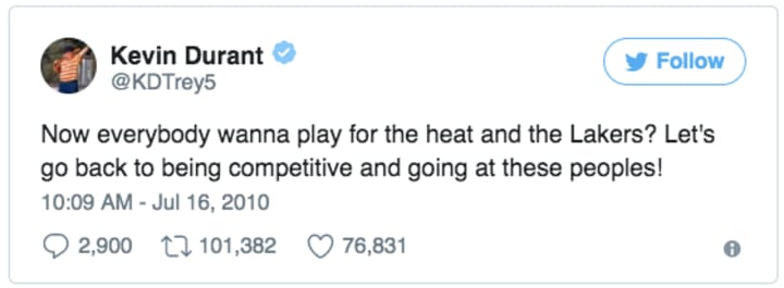 Instead of playing the blame game and pointing fingers at one another, just accept that these teams created something that has never been seen before. Durant certainly got on board after he sent this bad boy out seven years ago.