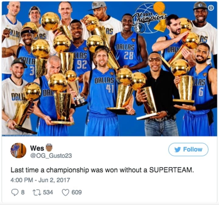 than the current Warriors or Cavs. Yes, there’s something admirable about winning without a gang of superstars but guess what? That’s not happening for a long, long time. These two teams made sure of that by perfecting the superteam.
