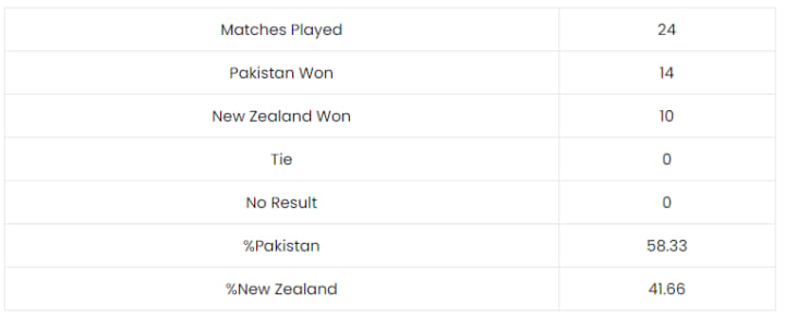 Pakistan and New Zealand first played the T20 world cup in 2002, September 22, and last played on December 22 last year. They have clashed 24 times in T20I format in that period, where New Zealand has won 10 times and lost 14 of those matches to Pakistan. This gives New Zealand a winning probability of 43% and Pakistan 57%. The Pakistan team knows how to get around New Zealand in any format. Pakistan has won three out of 5 t20 world cup games they’ve been to, with New Zealand leaving them with an inferior head to head record.