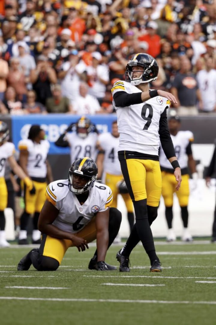 As for Super Bowl LVI's other team, the Cincinnati Bengals opened their defense of the American Football Conference Championship at home against their hated rivals, the Pittsburgh Steelers. This was a big game for the Steelers as well, as this was their first game following the retirement of their longtime legendary quarterback, Ben Roethlisberger. It was Mitch Trubisky at the helm, but the story was Joe Burrow--as he was a complete mess. Apparently, Burrow saw his Super Bowl counterpart throw three interceptions, so he decided to top that by committing four turnovers in the first half. He ended up with five overall, but despite this, it was a close game throughout, and the Bengals had one last chance to win it in regulation.