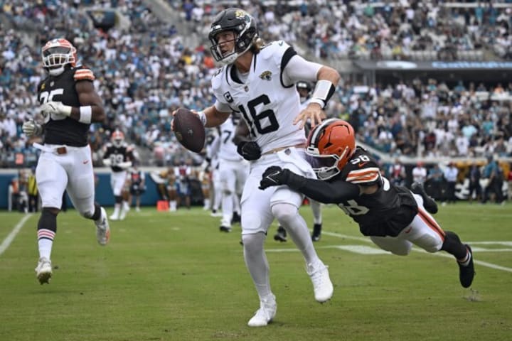 You know, Jaguars, maybe changing the name of your stadium to a namesake of your star QB isn't the way to go. The Jags' home opener at the renamed TrEver Bank Stadium was a disaster, as they lost, 18-13, to a Cleveland Browns team who was coming off being embarrassed at home. Elsewhere in the early window, the Seattle Seahawks defeated the New England Patriots, 23-20, in overtime to improve to 2-0, and the Los Angeles Chargers blasted the hapless Carolina Panthers, who have ended the Bryce Young experiment and will now go with Andy Dalton starting next week. Also, the Washington Commanders won, 21-18, over the New York Giants--thanks to Austin Seibert kicking seven field goals!