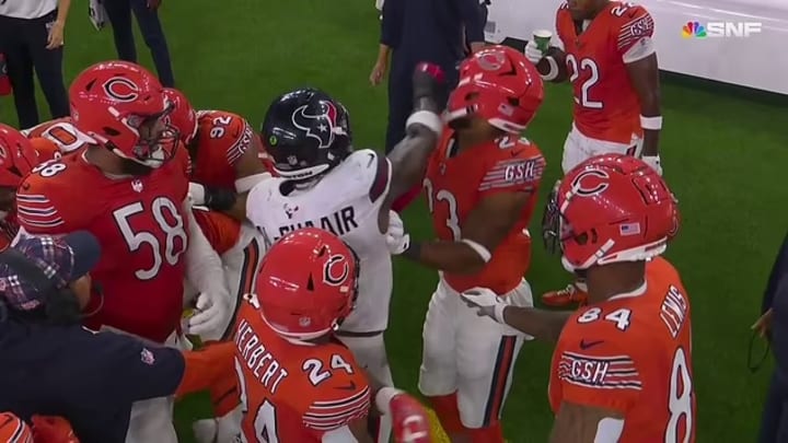 The refs ended up being the story quite a bit in the tail end of Sunday's action, from their shenanigans in KC to whatever the hell that was in Houston. They were handing out flags for everything. Well...almost everything. Texans linebacker Azeez Al-Shahir delivered an outright punch to Bears running back Roschon Johnson, and I mean it was an absolute right hook! No penalty, though. A punch like that is grounds for ejection and later fine, but Al-Shahir got off scot-free. Holy cow. The game itself was close, and it ended with the Texans winning, 19-13, to improve to 2-0.