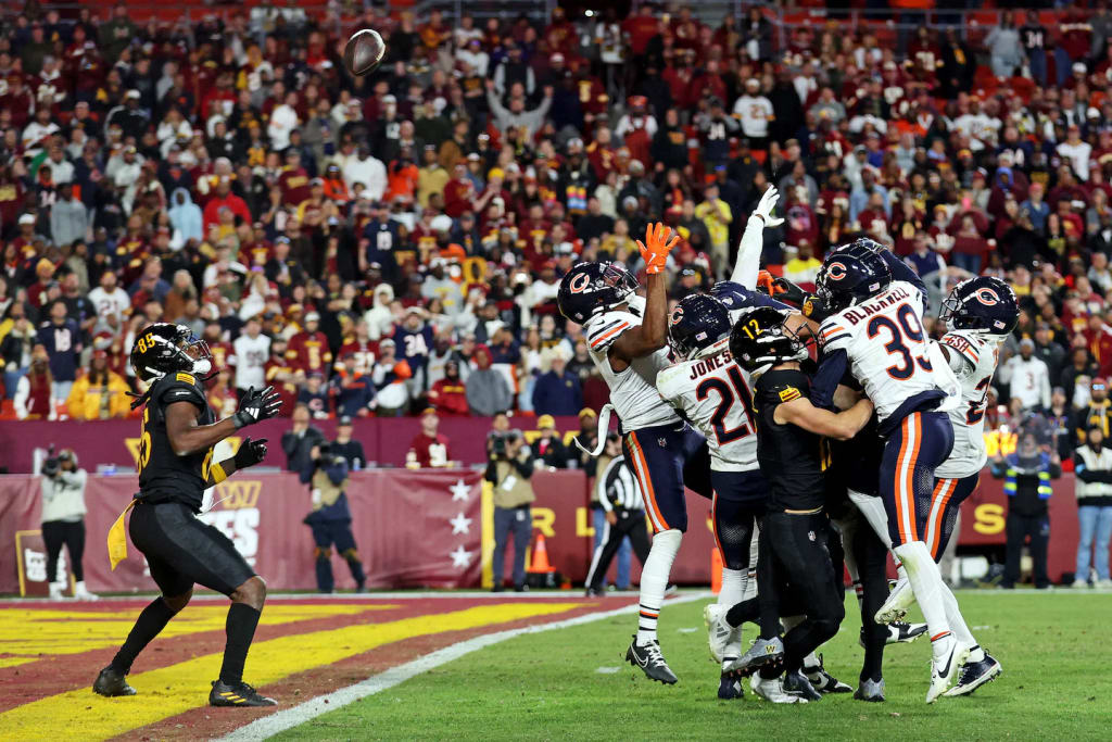 This man is Tyrique Stevenson, who is part of the Bears' secondary. Right before the Hail Mary attempt, Stevenson decided to taunt Commanders fans and later joined that aforementioned huddle. I had said before that the ball was tipped to Brown in the end zone. Care to take a guess at who tipped it? That's right. Stevenson. He had to eat crow and apologize for the trash talk. Holy moley. The Commanders improved to 6-2 with this win. They have six wins and it's not even November yet. I don't think anyone had this team winning six games all year!