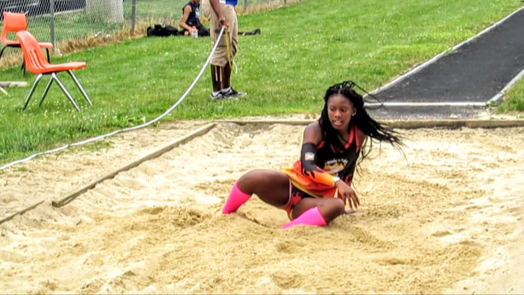Kiluvia and Badgett transferred their hurdles success to the girls 13 to 14 division of the long jump where they placed first and second at 4.64 and 4.59 meters respectively. The Heat had more long jump victories in the girls 15 to 16, and 17 to 18 divisions by Jaedyn Tucker and Shaniya Samuel.