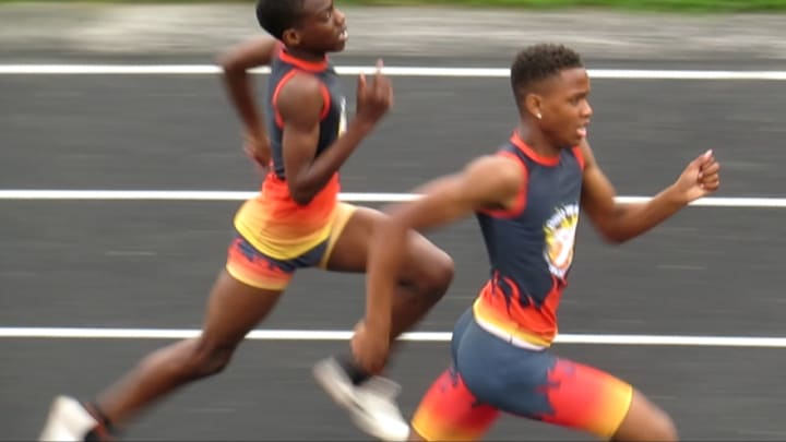 Shawn Payne edging out Jayden Douglas in the 400-meter dash.
