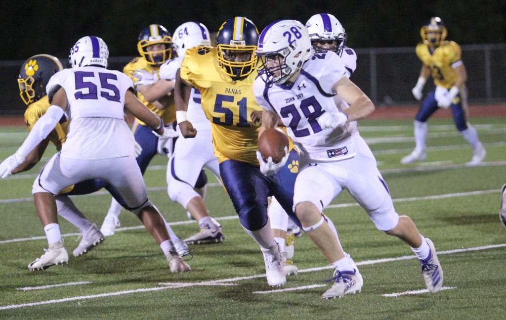 Coming into Friday night’s game at Walter Panas, John Jay has enjoyed three blowouts. The offense explodes in all directions, and the defense stands down everything in their way. But football is a three dimensional game, and Head Coach Jimmy Clark geared his lesson plan as such this week. “We put emphasis on special teams,” said Clark, and the kicking game responded with three touchdowns in tallying a 49-17 rout.
