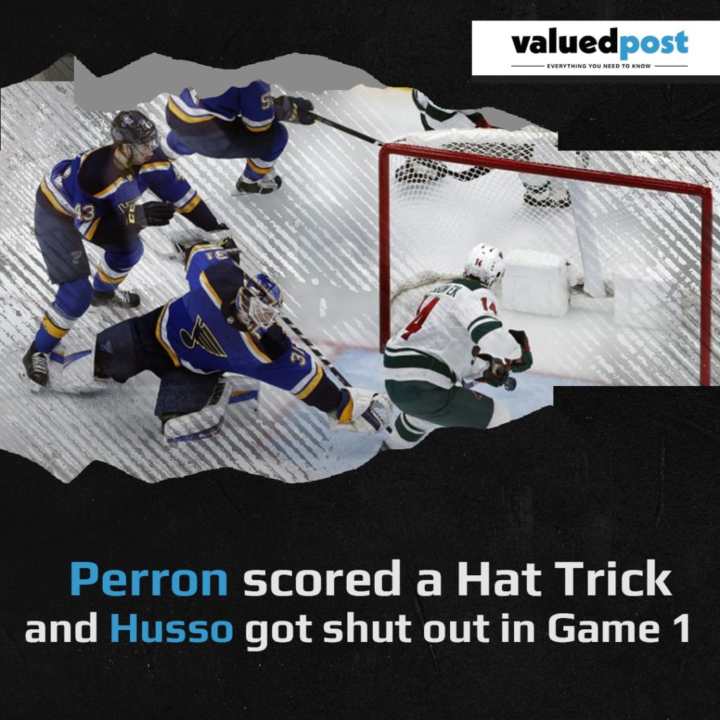 Perron scored a hat trick, and Husso got shut out in Game 1