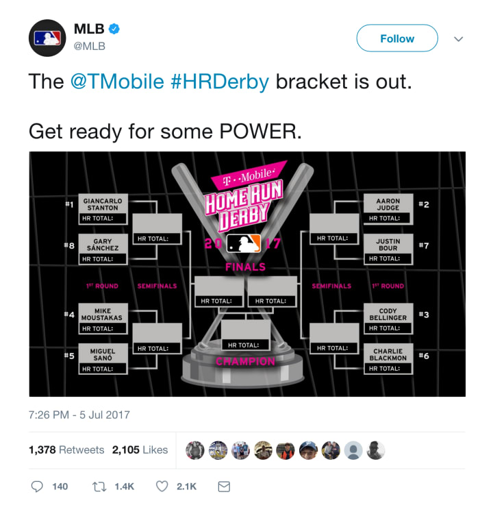 Either way, it will be entertaining as always, and it should be very interesting to see how Sano and Bour do in their first time in the Home Run Derby.