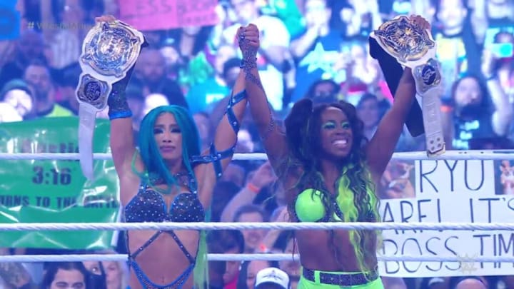 Even with the additions, it was clear that Sasha and Naomi were winning this match, and that's exactly what happened when both of them took down Carmella and Sasha delivered the pin. Here's a shocking statement: this was Sasha Banks' first WrestleMania win. Seven years on the main roster, and this was her first win at WrestleMania. For Naomi, this was her first championship in four and a half years. This was long overdue for both women.