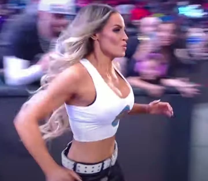 Enter Trish Stratus. The seven-time Women's Champion and WWE Hall of Famer entered the scene, because WWE still thinks Trish and Lita are joined at the hip. She took down Bayley at ringside, and embraced Lita before cheering on her bestie and Becky Lynch. The final moments came when Lita had Iyo set up for her legendary moonsault--Trish took down Bayley, and Becky held Dakota at bay with the Dis-Arm-Her, allowing Lita to deliver that beautiful moonsault and pick up the victory...as well as the tag titles.