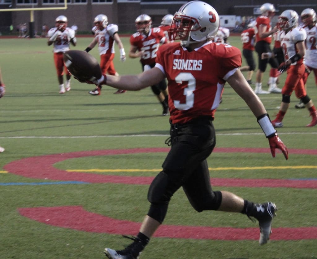 For the bulk of last night’s game between Somers and Sleepy Hollow, the end zone didn’t have a lot of company from the 70 players suited up at the High School. But when one breaks the plane four times, it's more about the company you keep, and Wide Receiver Matthew Pires happily obliged to be on the receiving end in Somers' 28-6 victory.