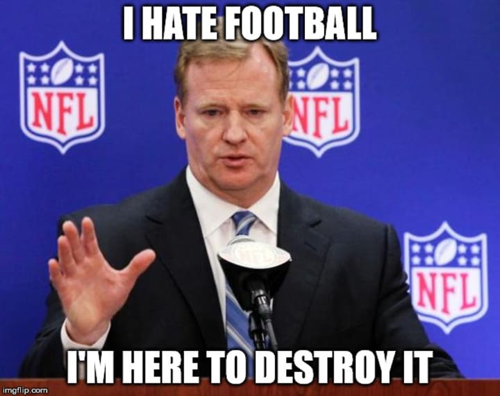 The 2021-22 NFL season is about to be one of the leagues weirdest seasons ever; from being a now 17-game season to having 2 bottom teams from both the AFC and the NFC sneaking into the playoffs. the worst thing about this season so far is the "taunting" penalty as NFL commissioner Roger Goodell will make up new rules, causing the outcome of games being unfair. this isn't just him however, there were rumors of referees manipulating the outcomes in games for TV ratings as this was happening when Roger Goodell became commissioner back in 2006. the NFL is at a pivotal point where their product is going downhill and viewers are lurking in the other direction by turning the channel.