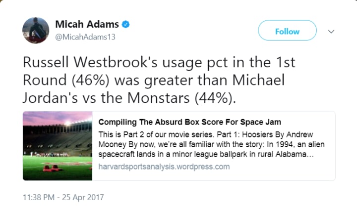 The Thunder, on the other hand, are expected to get more usage out of George and Westbrook than Dos Equis did with the original Most Interesting Man in the World before they kicked him to the curb. Westbrook finished on top of the league with a staggering 40.3 usage % while George came in 16th at 29%. We all expect Westbrook’s usage % to take a hit, especially since he touched the ball more than Space Jam Jordan at times.