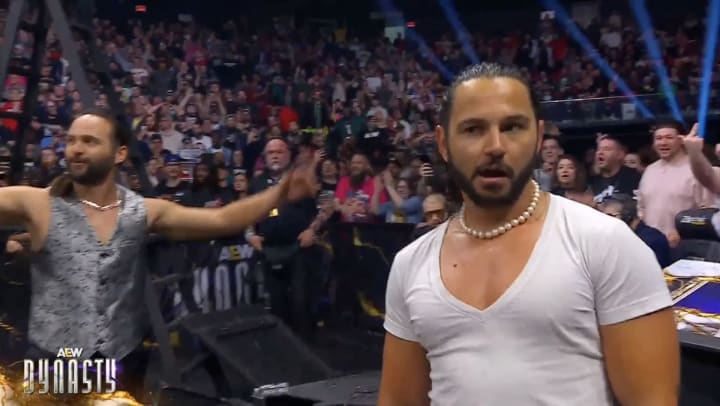 Strickland, a former World Champion, challenged Moxley for the title back at Dynasty. He was close to winning until The Young Bucks returned and cost him the match. The Bucks claimed they interfered in the match because of Hangman.