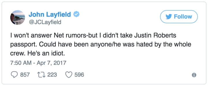 David Bixenspan expanded on the story for Deadspin, providing further details. Former WWE performer John Hennigan (known in WWE as John Morrison/Johnny Nitro) gave his account. Layfield asked Hennigan and his tag-team partner, Joey Mercury, to steal the passport on a flight while Roberts was sleeping. Layfield was harrasing them as well, and saw the stealing of the passport as an opportunity to end their own torment. Ultimately, they did not listen to Layfield’s request. It was a fascinating account into the scope of Layfield’s bullying and harassment of so many WWE employees.