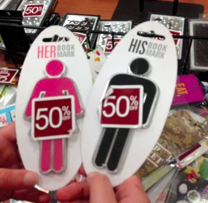 I get how the whole “Mr. and Mrs.” product pairing can make for cute engagement or anniversary gifts, but there’s a time and place for these. Here’s a gendered bookmark incase your bookmark gets lonely or you forget which one is yours. I really don’t have much to say here. I just hope you have better style when picking out a bookmark. These bookmarks look like they're portable bathroom signs. Do you really want to walk around like that?